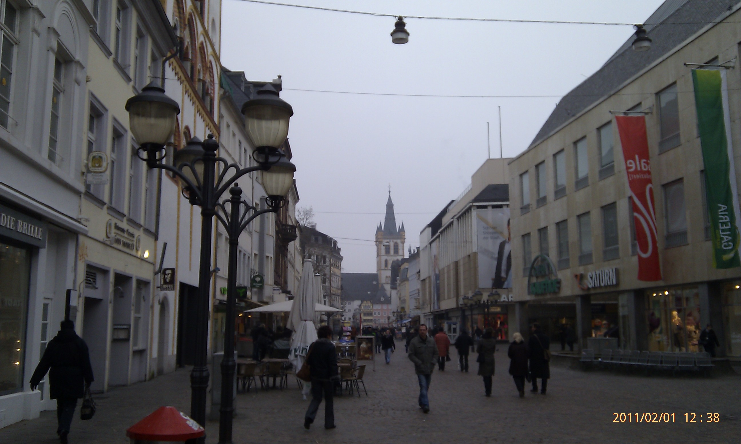 Blick in die Fußgängerzone Veröffentlicht 9. Juli 2012 am 2592 × 1552 in Trierer Eindrücke! Blick in die Fußgängerzone Hier komme ich gerade aus Richtung Porta und gehe die Simeonstraße entlang, die direkt bis zum Marktplatz führt. Im Hintergrund zu sehen St. Gangolf.