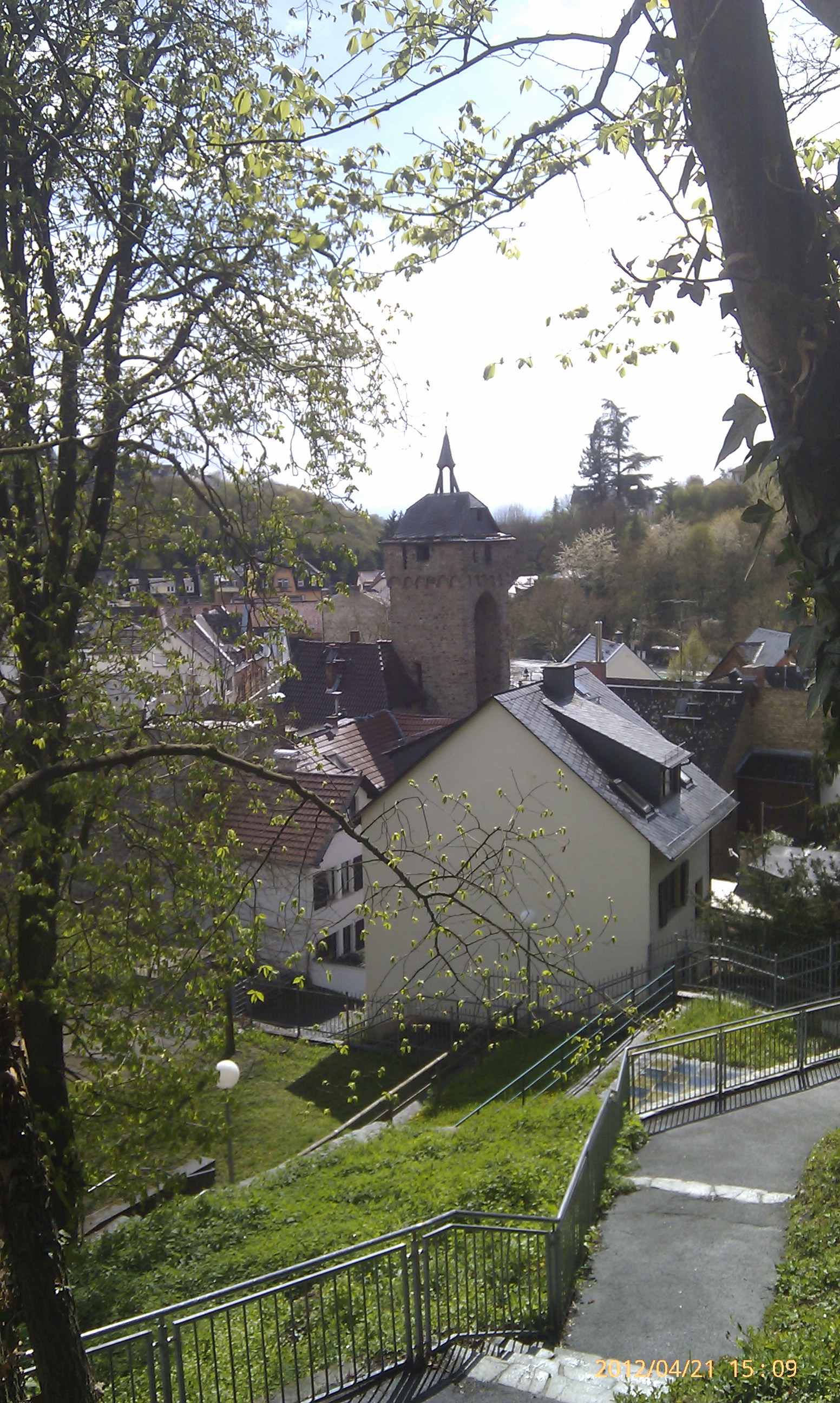 Wehrturm und Wiesbadener Tor Veröffentlicht 28. April 2012 am 1552 × 2592 in Einmal über Aukamm, Sonnenberg und zurück! Wehrturm und Wiesbadener Tor Blick von der Burg Sonnenberg in Richtung Innenstadt. Zentral zu sehen der alte Wehrturm am Wiesbadener Tor.