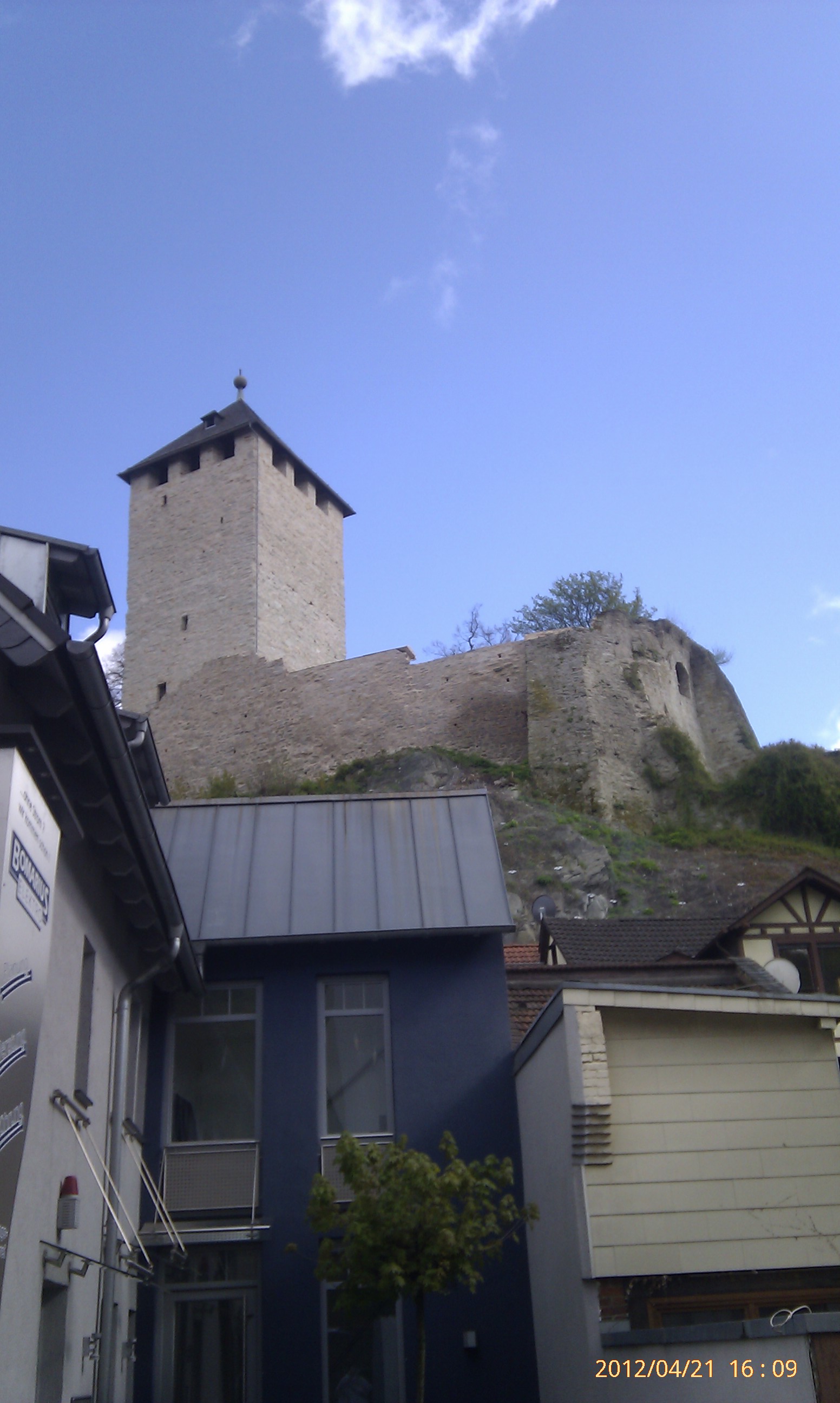 Blick von unten zur Burg Veröffentlicht 28. April 2012 am 1552 × 2592 in Einmal über Aukamm, Sonnenberg und zurück! Die Burg Sonnenberg von Sonnenberg aus gesehen.