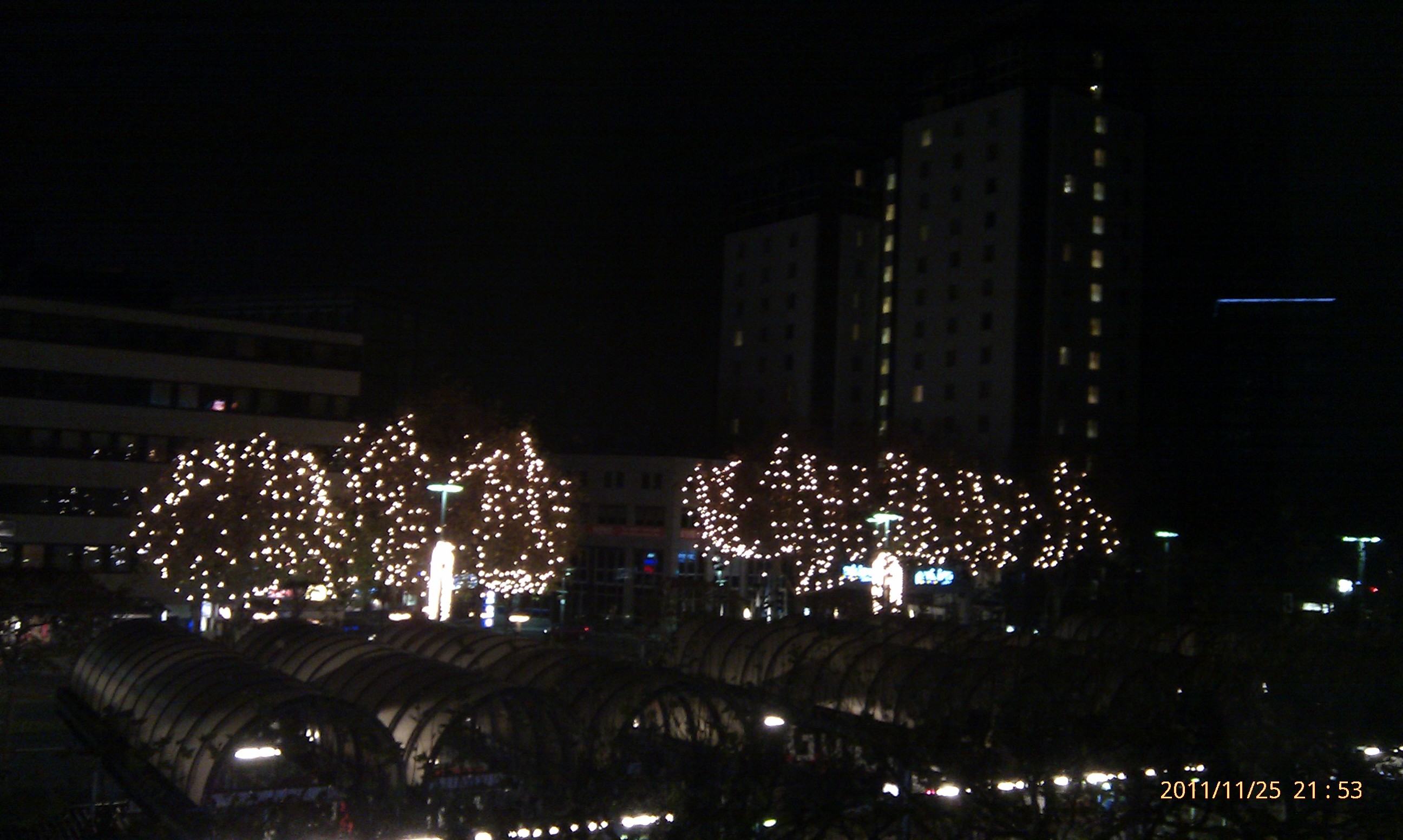 Blick aus dem Hotelzimmer Veröffentlicht 5. August 2012 am 2592 × 1552 in Bochum – Teil 1: Die Ankunft Blick aus dem Hotelzimmer Auch die Beleuchteten Laubbäume auf der anderen Straßenseite kann man gut erkennen. ganz Rechts übrigens die Beiden Hochhäuser des Park Inn Hotels