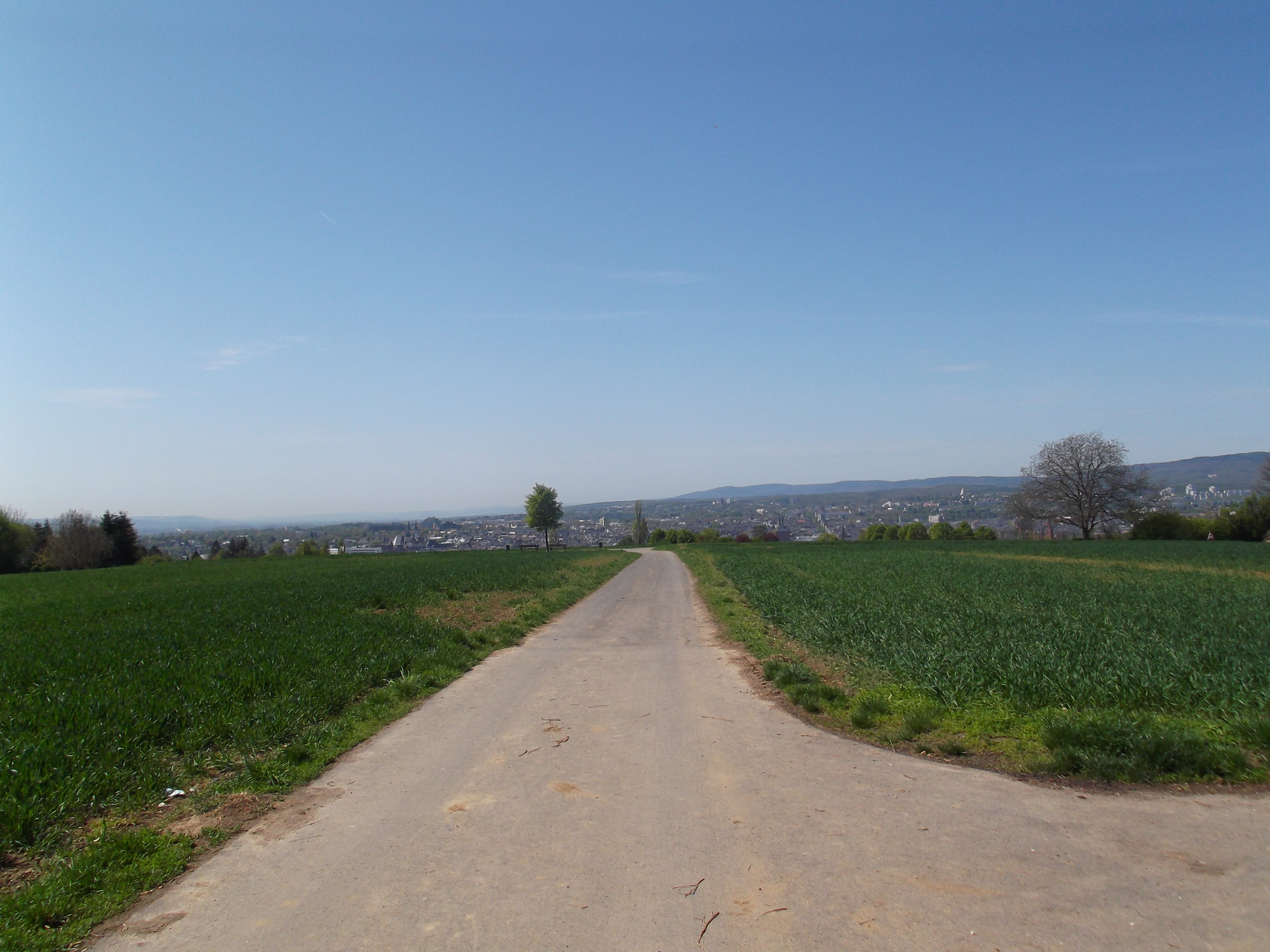 Einige Büsche und Sträucher verdecken die Sicht, aber dennoch kann man sogar die Rheinstraße dort unten in der Innenstadt ausmachen.