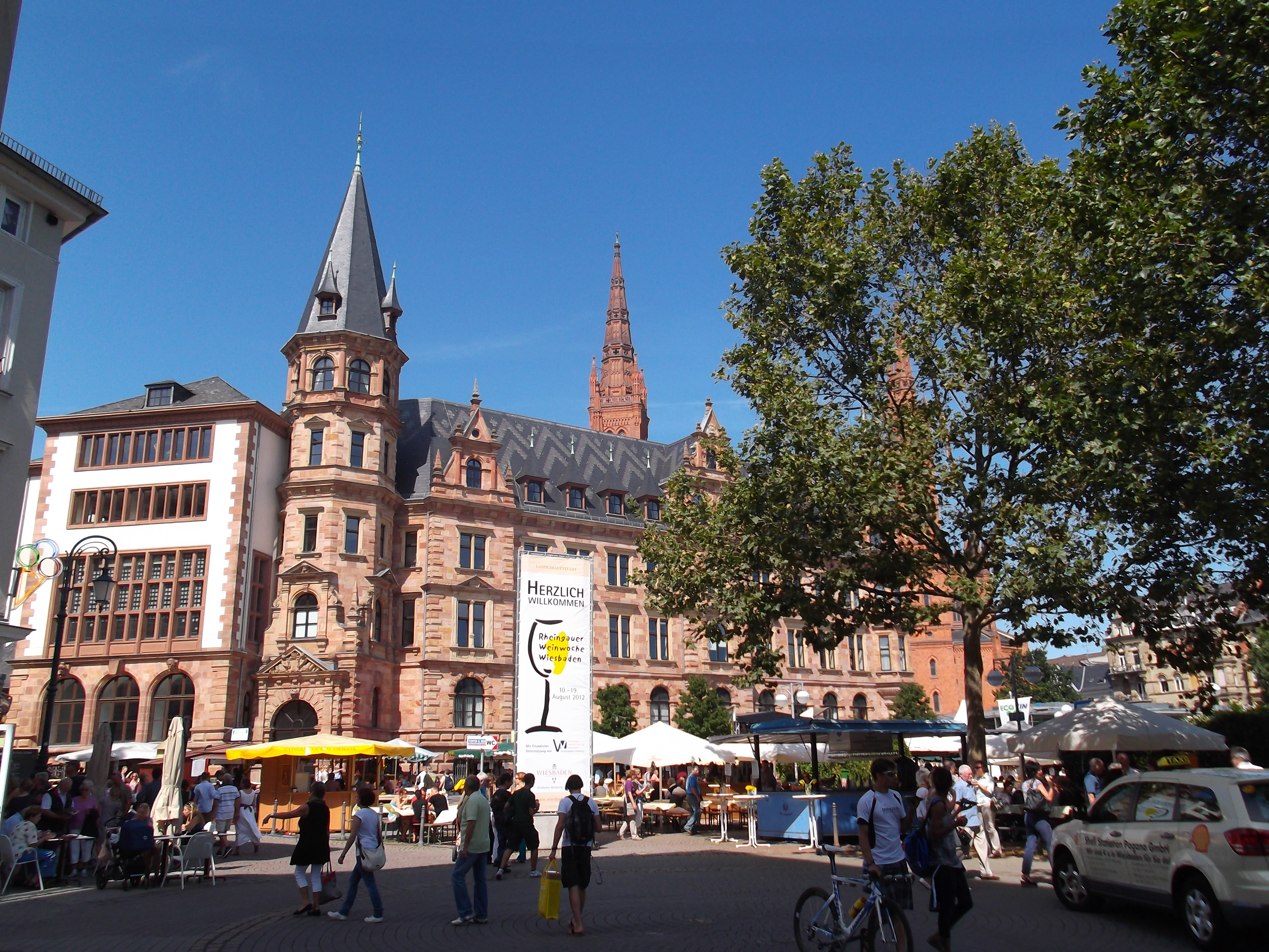 Neues Rathaus Veröffentlicht 22. Dezember 2013 am 4288 × 3216 in Durch den Park in die Stadt, durchs Villenviertel zurück! Neues Rathaus Davor Stände der Wiesbadener Weinwoche.