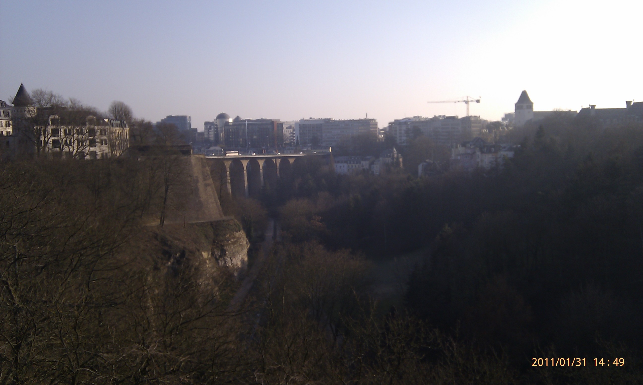 Blick auf das Viadukt, auch alte Brücke genannt, die das Petruss-Tal überspannt.