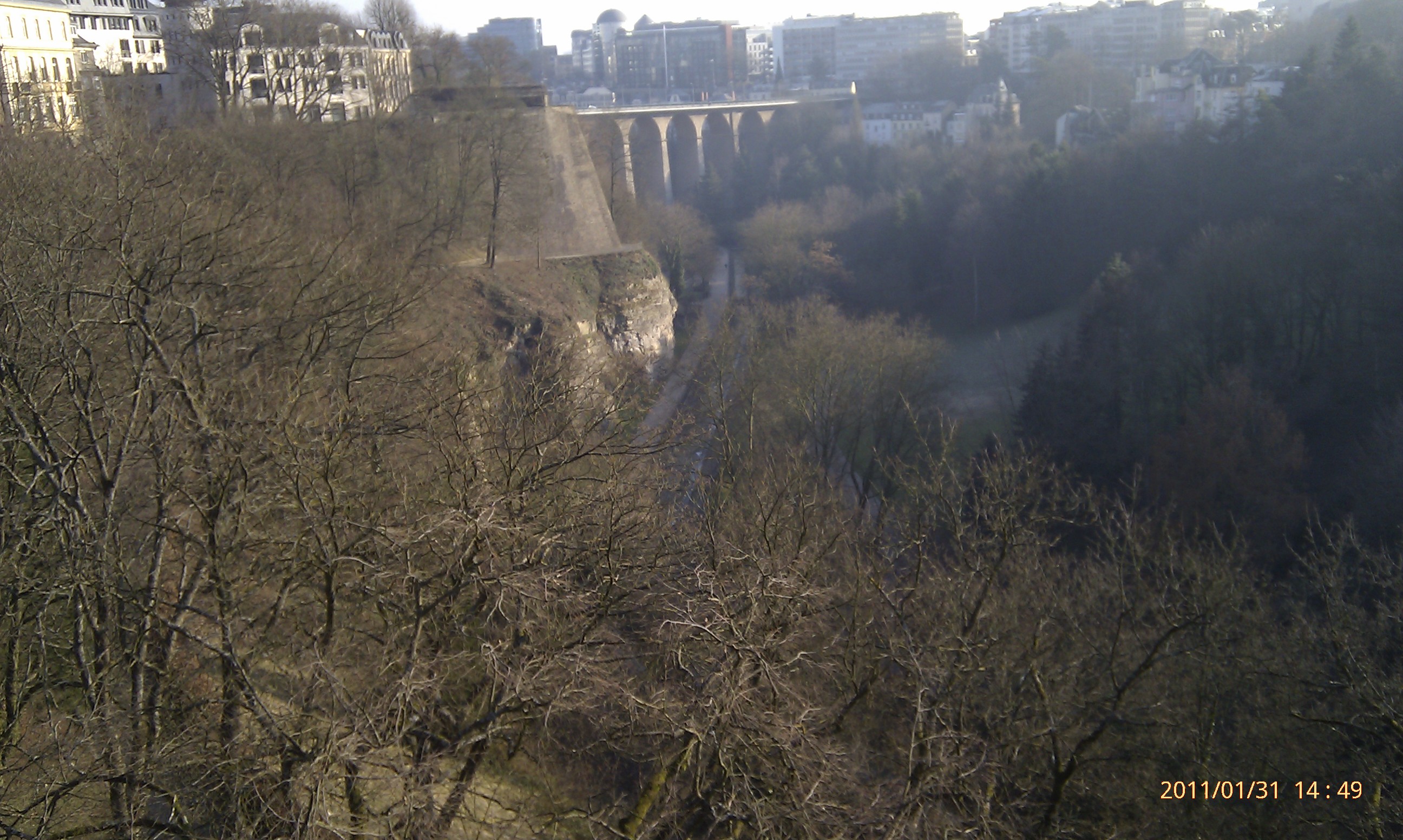 Blick hinunter in das Petruss-Tal, im Hintergrund die „alte Brücke“