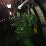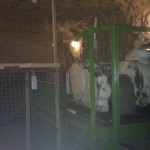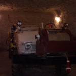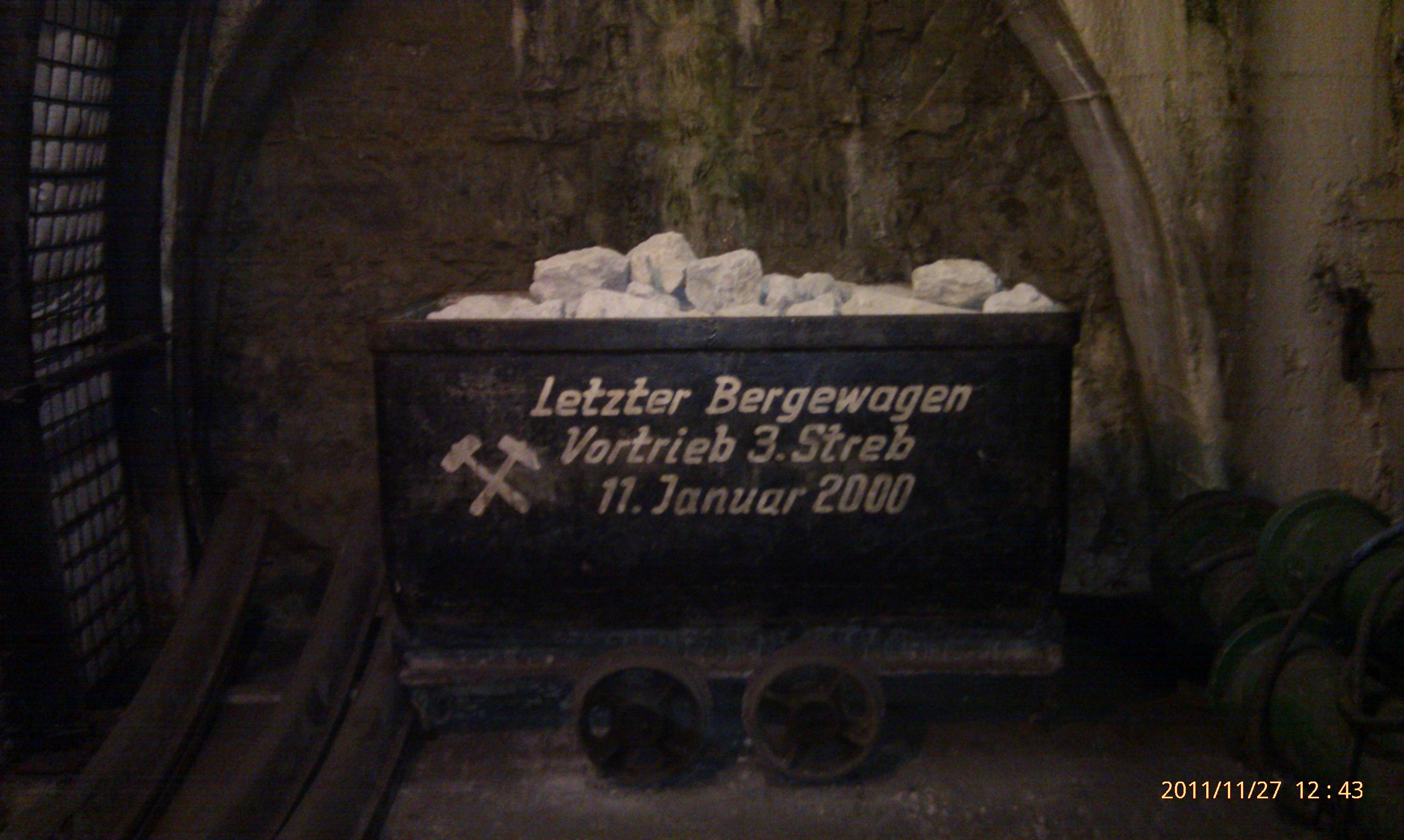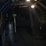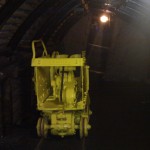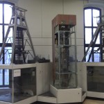 Hat man das Museum betreten sollte der erste Gang auf jeden Fall der zum Aufzug sein. Stileecht wird man dort von einem „Bergmann“ in das, 20 m tiefliegende, Anschauungsbergwerk gefahren. Dort unten befinden sich auf 2,5 km Strecke, Maschinen, Geräte und Fahrzeuge mit Bezug zu unterschiedlichen Arten des Bergbaus, direkt in realer Umgebung. Unteranderem wird der Abbau von Salz, Erzen und natürlich auch der regional bedeutenden Steinkohle gezeigt. Interessant ist, das es sich bei allen Exponaten um ausgemusterte Originalgeräte handelt. Entsprechend interessant ist es auch einmal neben einer dieser riesigen Maschinen zu stehen oder sich gar einmal in das Führerhaus zu setzen. Besonders beeindruckend fand ich z. B. die große Tunnelfräse oder den 80 m langen Hobelstreb. Doch es gibt aber auch kleinere Ausstellungsstücke, die nicht weniger beeindrucken. So werden auch Geräte für den Notfalleinsatz gezeigt und man kann einmal selbst darüber nachdenken ob man tatsächlich den Mut hätte sich in einer schmalen Rettungskapsel aus dem Untergrund heben zu lassen.