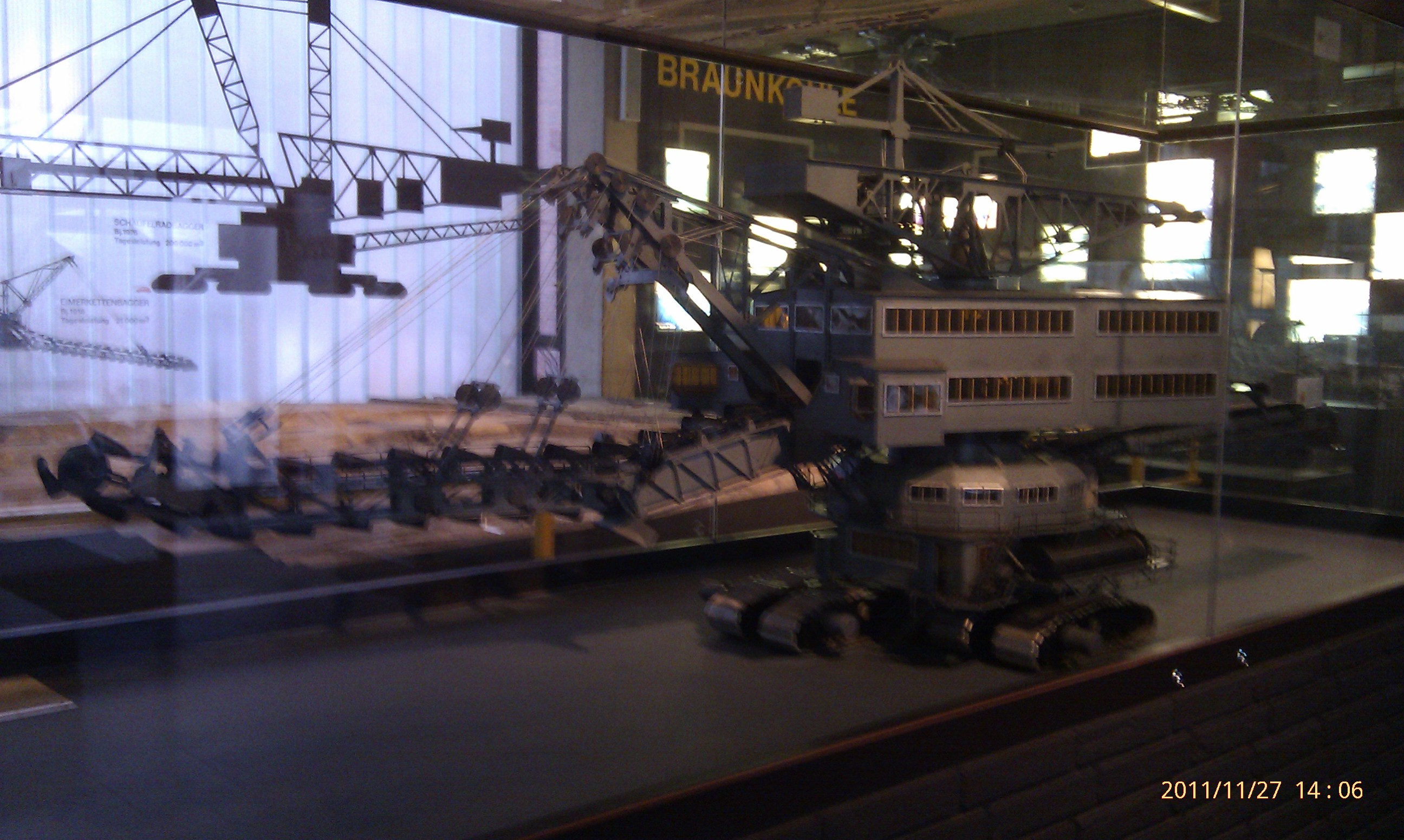 Besonders interessant fand ich auch eine Sammlung von Stereokarts, die den Besucher mit 3D-Aufnahmen in die Zeit vor dem modernen Bergbau entführt. Als besonderer Kontrast stehen nur einen Raum weiter dann bereits Modelle moderner Abbaumaschinen, hier steht unteranderem ein, auch im Modell noch sehr großer, Steinkohlebagger.