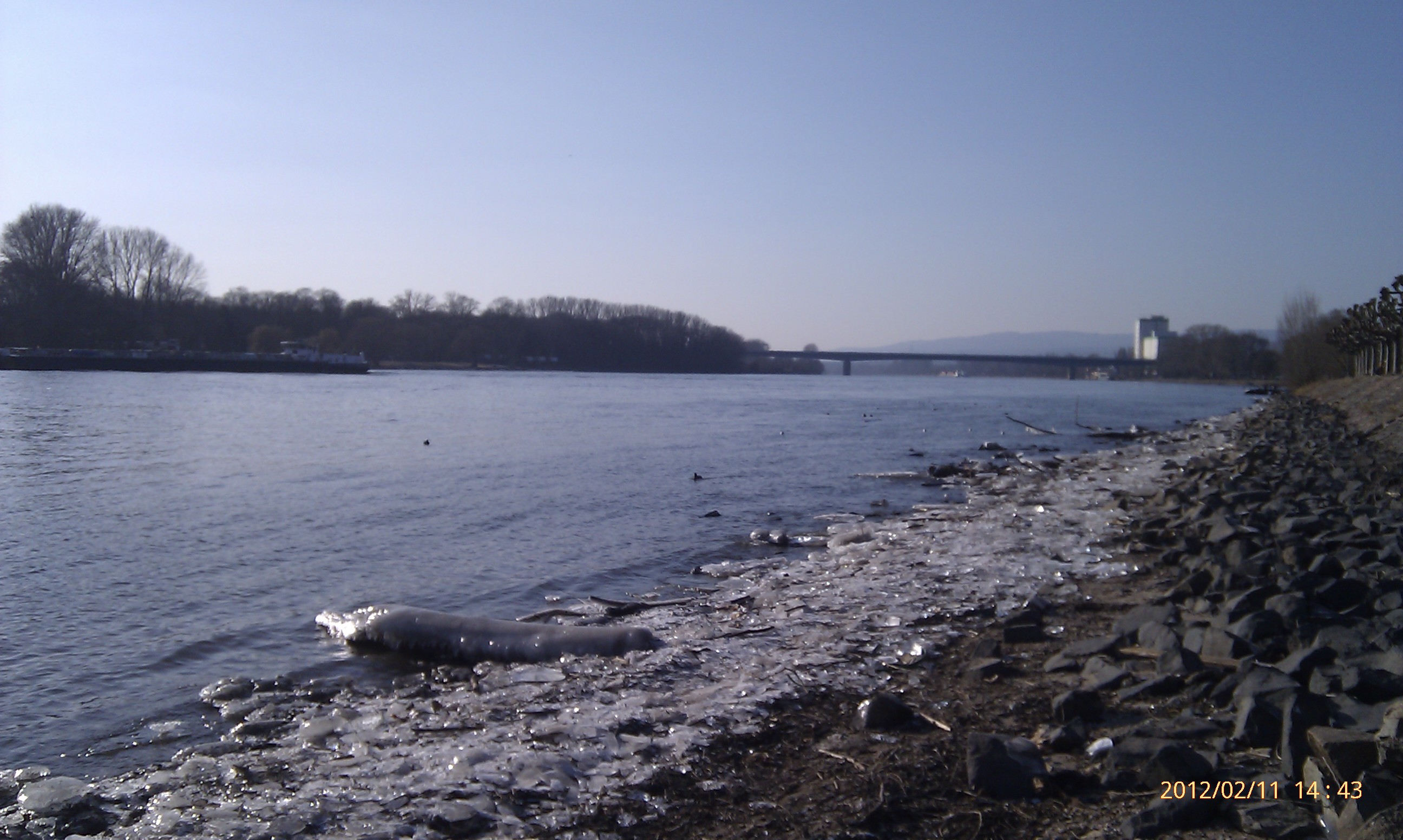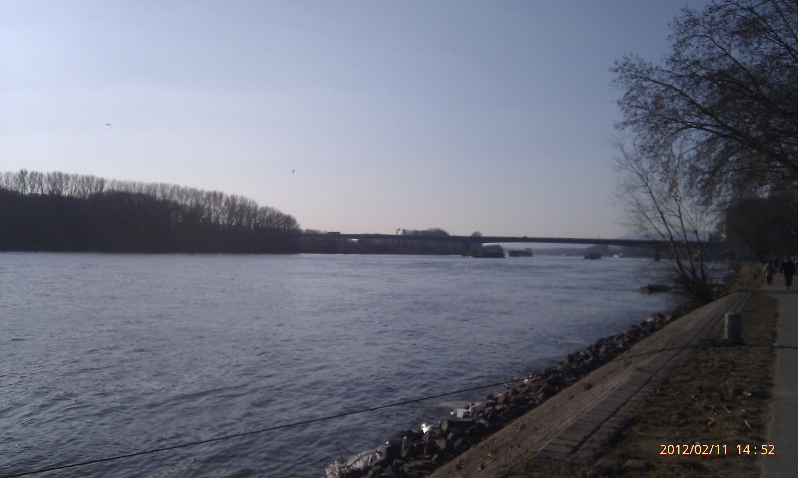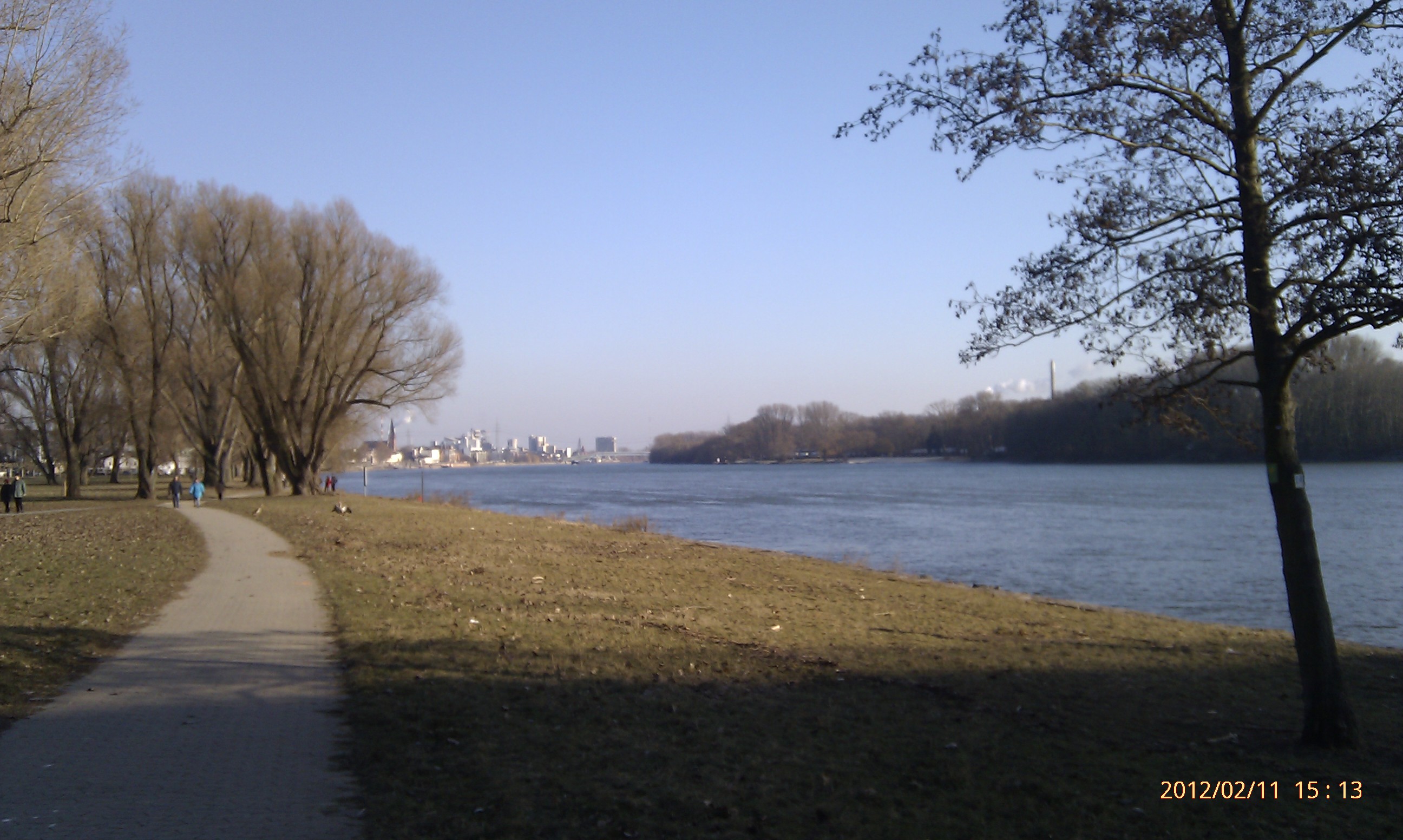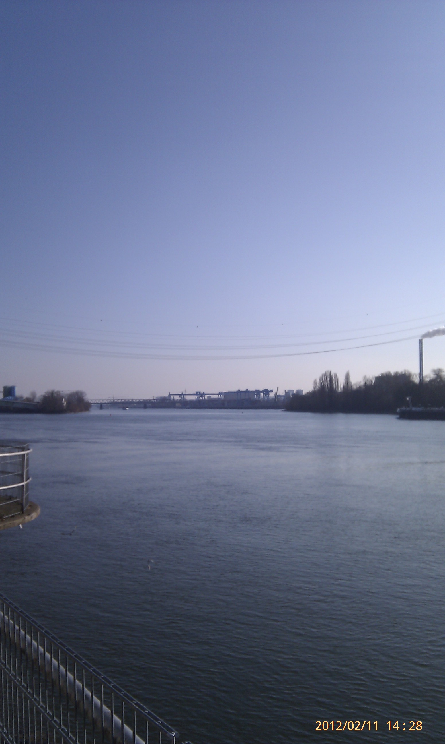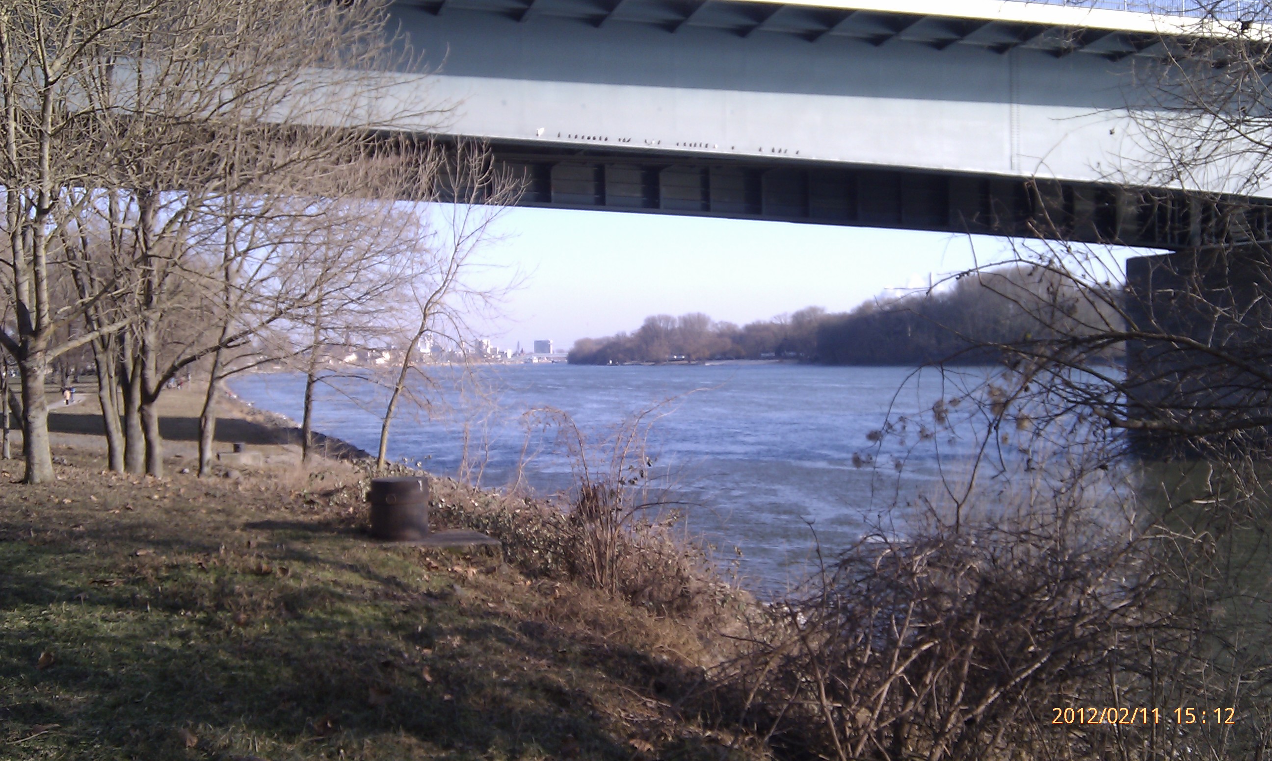 Und weiter gehts nach Süden! Wobei hier der Weg durch die Umrundung einer Art Industriehalde etwas umgelenkt wird. Als ich an dieser vorbei war, konnte ich mich wieder in Richtung Stadt, also wieder nach Nordwest wenden. Das heißt, einfach nur dem Weg folgen. Dies ist der schönste Teil der Strecke. Der Weg führt eine ganze Weile nur vorbei an Bäumen, Sträuchern und Wiesen. Außerdem werden die Bahngleise zweimal überschritten. Von der zweiten Brücke aus hat man dabei einen phantastischen Blick nach Wiesbaden-Biebrich und den alten Wasserturm. Für mich hat sich der lange Weg damit schon gelohnt.