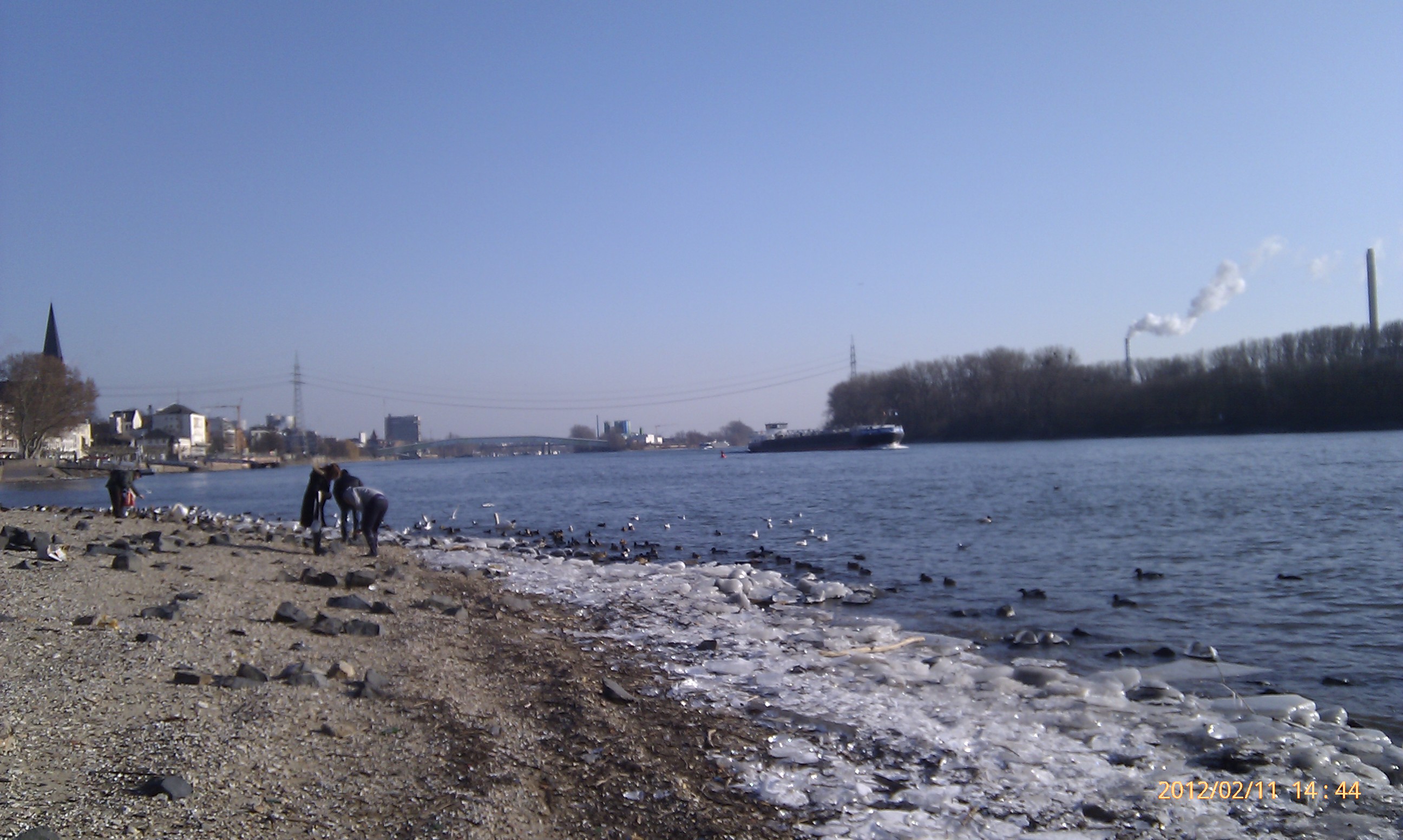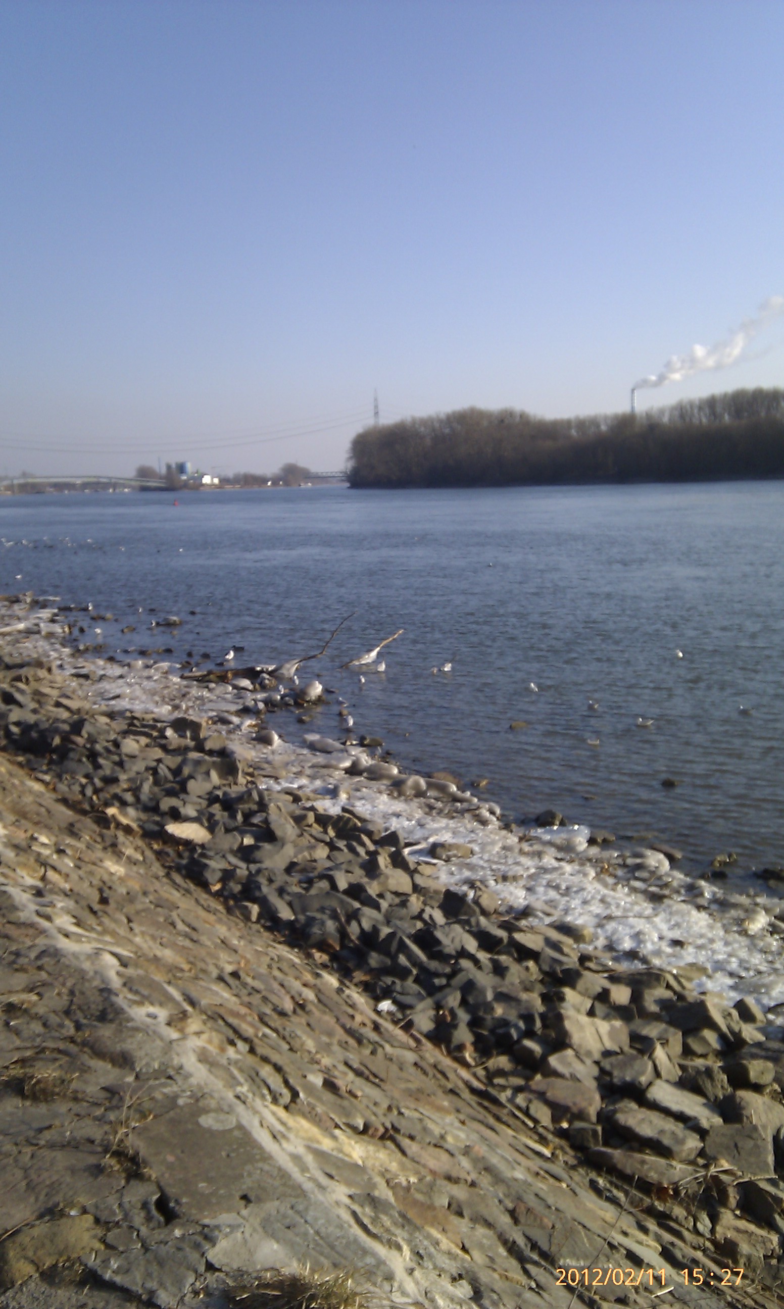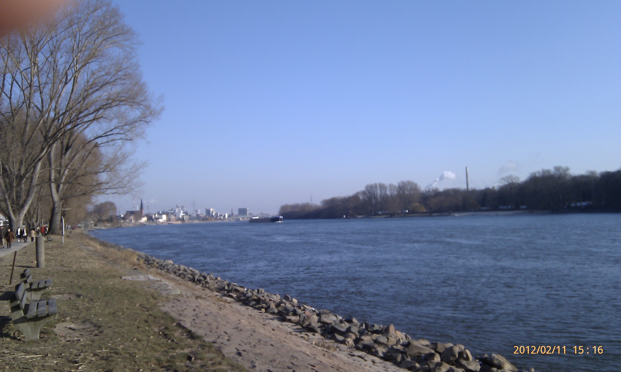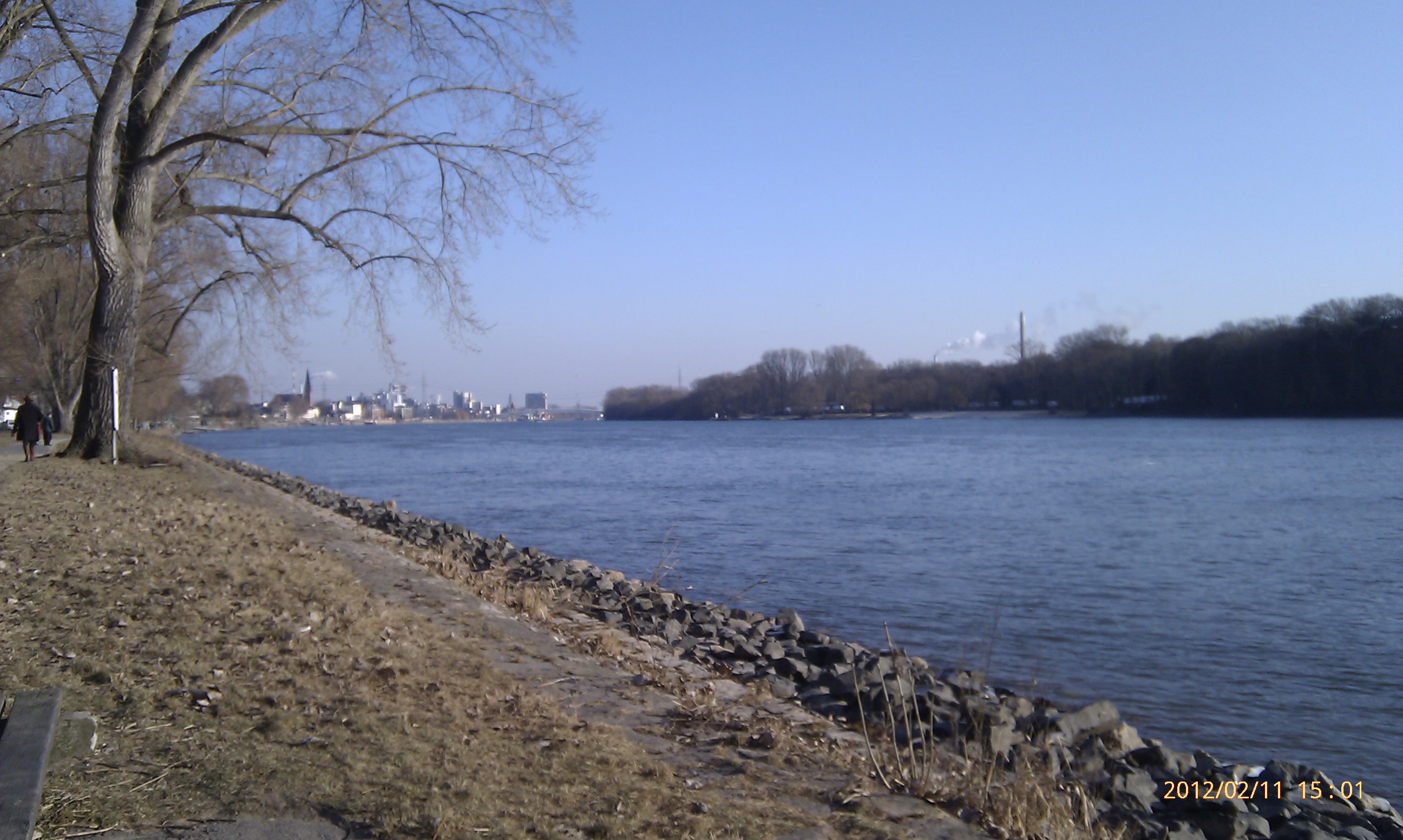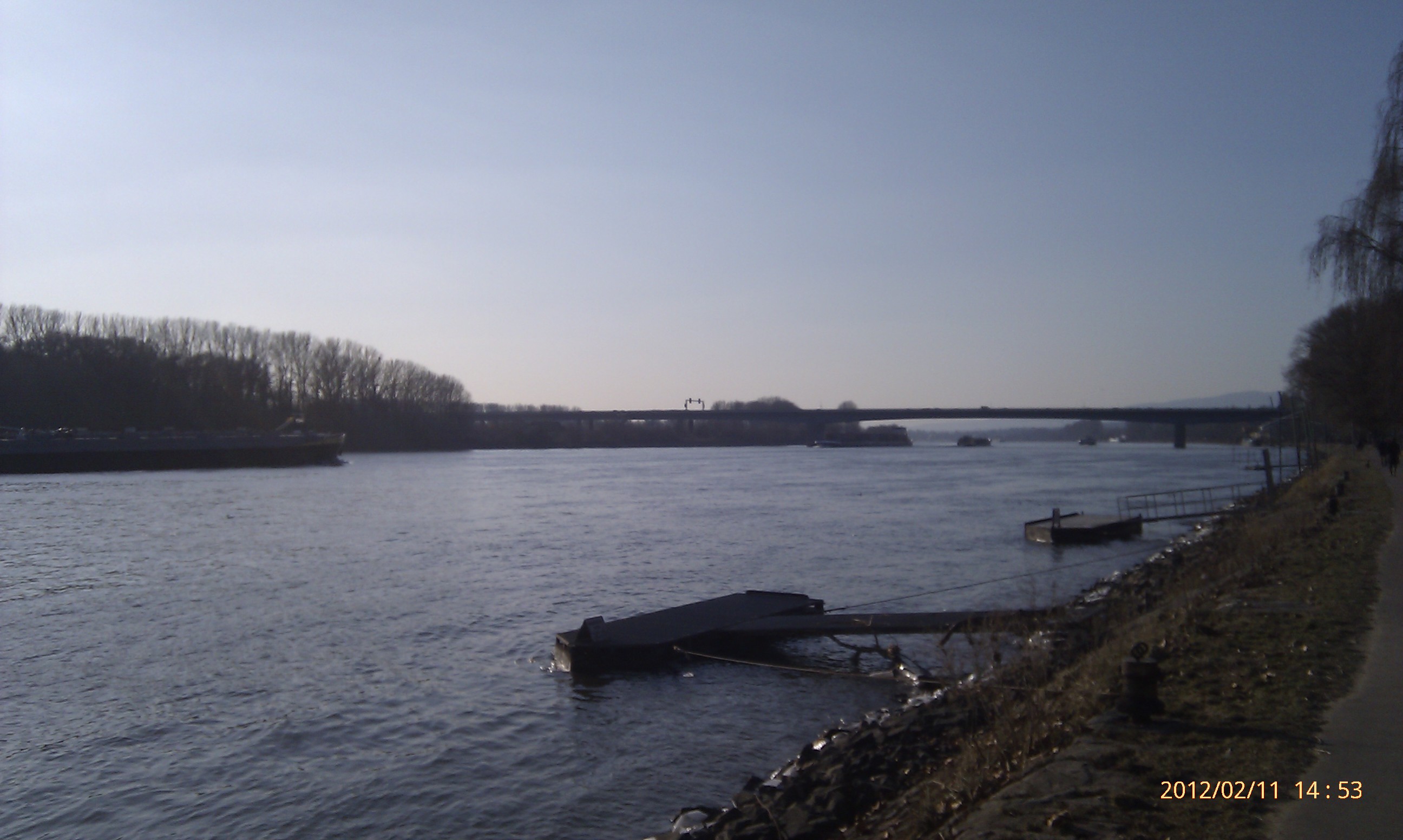 Und weiter gehts nach Süden! Wobei hier der Weg durch die Umrundung einer Art Industriehalde etwas umgelenkt wird. Als ich an dieser vorbei war, konnte ich mich wieder in Richtung Stadt, also wieder nach Nordwest wenden. Das heißt, einfach nur dem Weg folgen. Dies ist der schönste Teil der Strecke. Der Weg führt eine ganze Weile nur vorbei an Bäumen, Sträuchern und Wiesen. Außerdem werden die Bahngleise zweimal überschritten. Von der zweiten Brücke aus hat man dabei einen phantastischen Blick nach Wiesbaden-Biebrich und den alten Wasserturm. Für mich hat sich der lange Weg damit schon gelohnt.